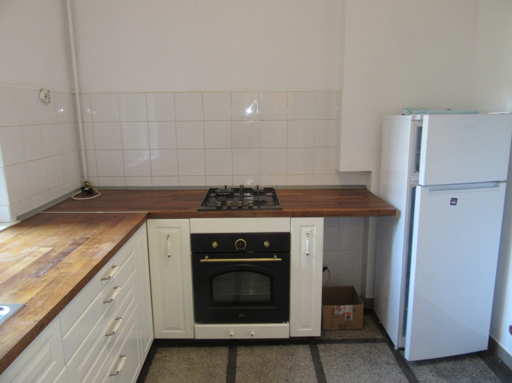 Bucataria este mobilata si utilata complet : plita pe gaz incorporata si cu 4 arzatoare, cuptor pe gaz incorporate.