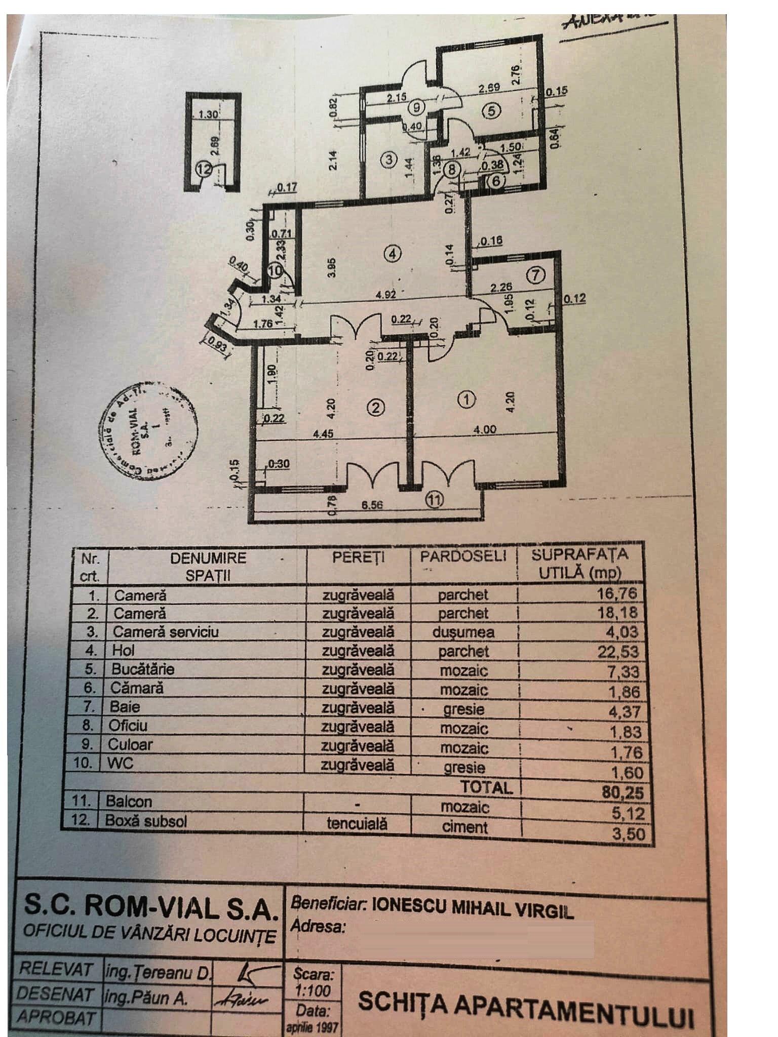 Detalii : centrala termica proprie marca Ariston, 2 aparate de aer conditionat, zugravit cu vopsea lavabila alba, jaluzele verticale, parchet din stejar masiv, cada baie in buna stare, tamplarie PVC cu geamuri termopane, gresie, faianta, instalatii sanitare schimbate, apometre, cablu TV+internet, interfon.