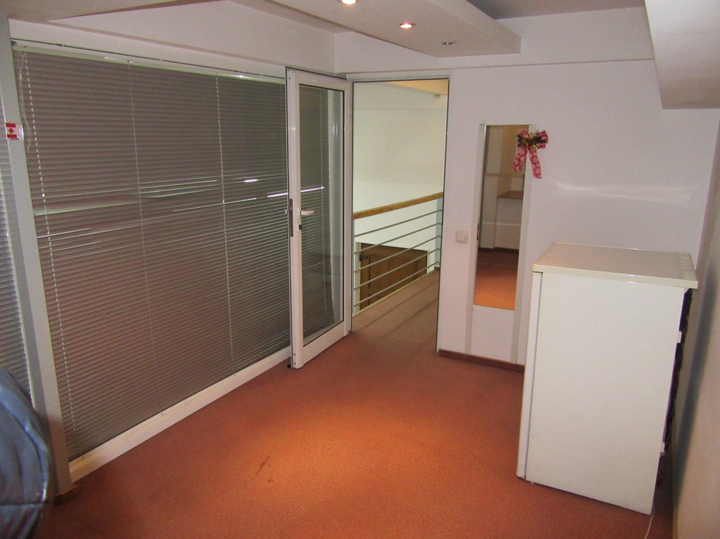 Spatiul este compus dintr-o sala mare, deschisa, cu inaltimea de 5m, ceea ce a permis constructia unui spatiu supraetajat, pe structura metalica, spatiu inchis cu tamplarie din aluminiu si geamuri termopan ce poate fi folosit ca birou sau dormitor. Accesul la acest nivel se face pe scara interioara iar inaltimea are 2.20m.